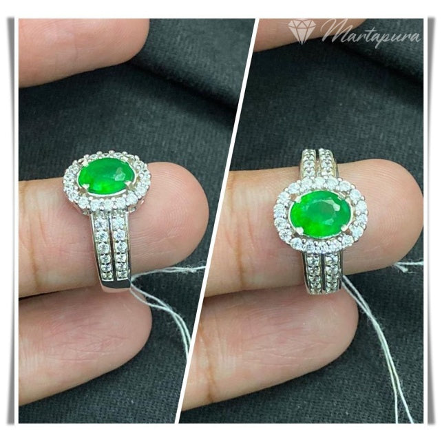 Cincin perak permata zamrud india | Bahan Cincin perak asli 925 | Ring ukuran 16-20mm | Ukuran batu 6x7mm, model batu opal cutting | More info WA 087816003399, WA 081290315050.