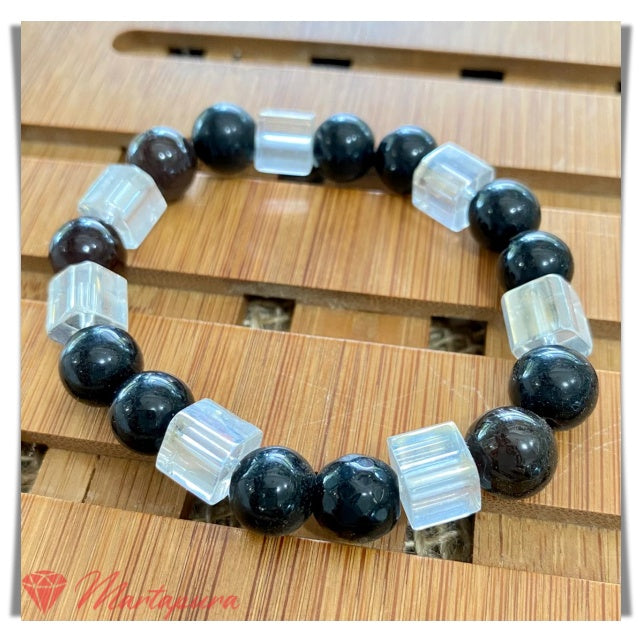 GBT0944 Gelang Batu Black Onyx Mix Kristal Kotak