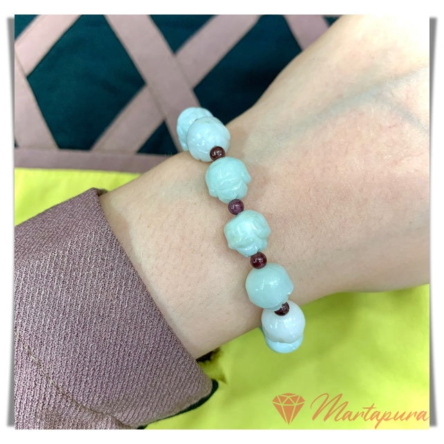 Gelang batu giok birma model bunga kombinasi batu garnet | Gelang batu alam | Karet elastis | Ukuran batu giok 10mm | Garnet 4mm | Free box | Info kontak ke no...