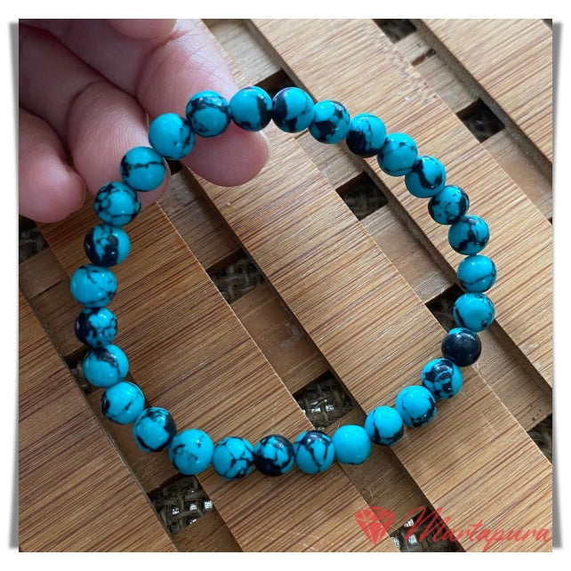 Gelang batu pirus | Ukuran batu 6mm polos | Bahan batu alam | Model gelang karet elastis | Info kontak ke no WA 087816003399, WA 081290315050.