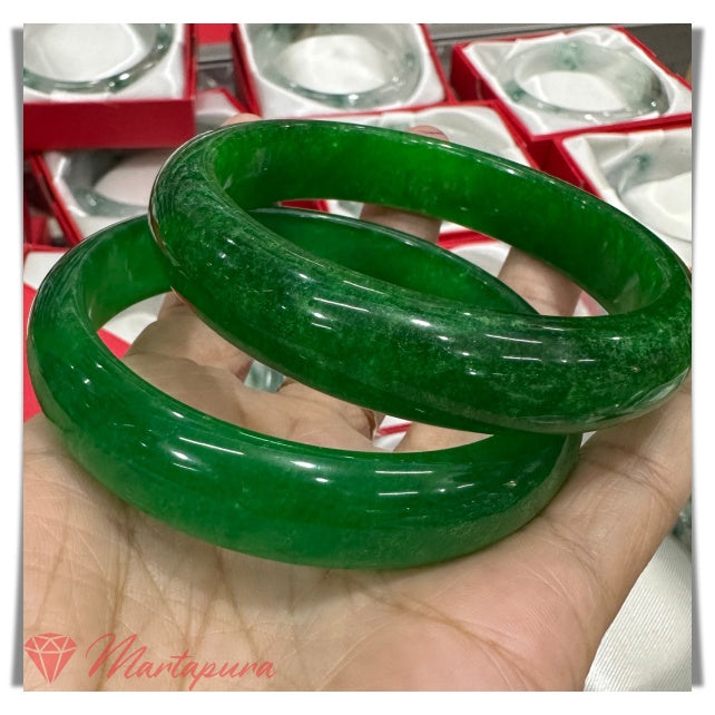 Gelang batu giok birma | Bahan batu giok asli | Model gelang bangle pipih | Ukuran diameter 5,6cm - 6,1cm, lebar 1,2cm | Info kontak ke no WA 087816003399, WA 081290315050.