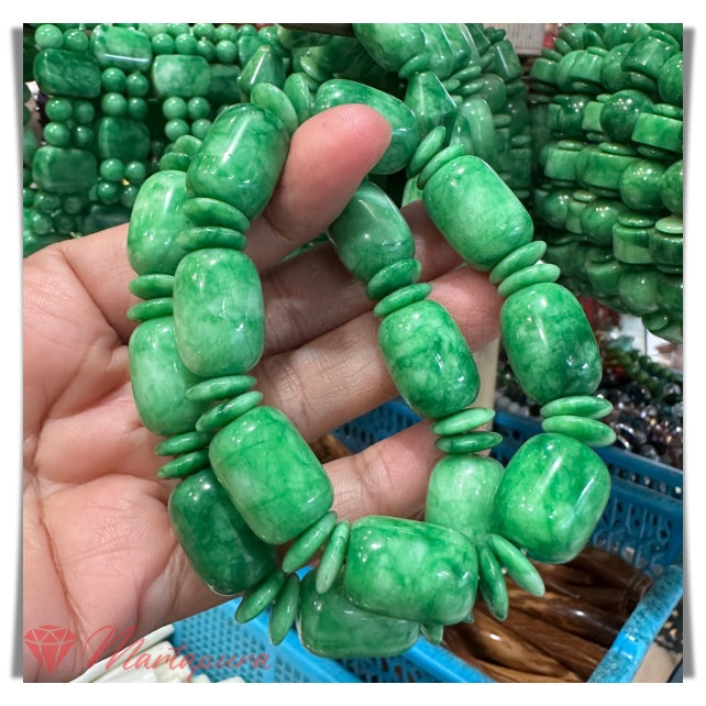 Gelang batu giok cina | Bahan batu giok, karet elastis | Ukuran batu 8mm,12mm | Info kontak ke no WA 087816003399, WA 081290315050.