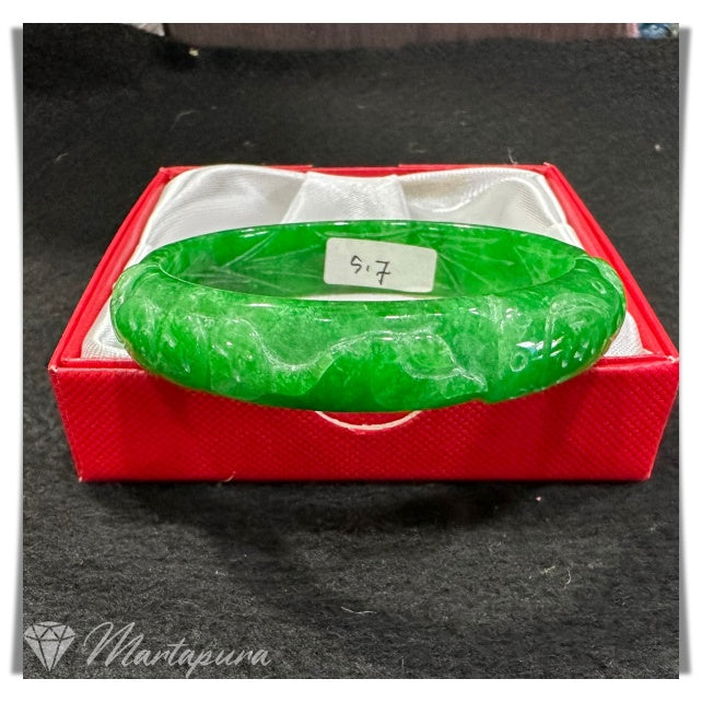 Gelang batu giok ukir | Gelang batu giok bangle ukiran tiap gelang beda-beda | Model pipih | Ukuran diameter lubang 5,7cm lebar 1,4cm | Info kontak ke no WA 087816003399, WA 081290315050.